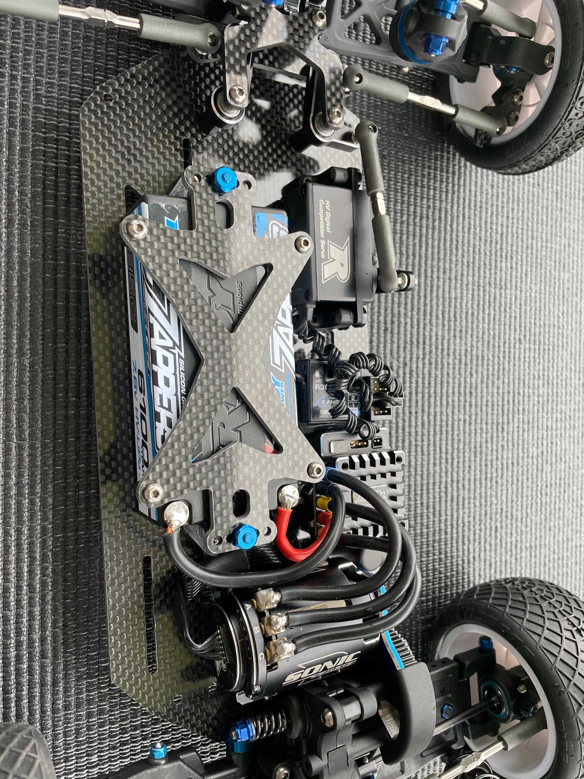 -Adjustable Steering Plates, Motor Spacer, Battery Brace and Upper Brace Included